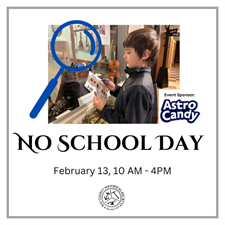 No school ... no problem! Join us for a "No School Day" event. Visit the museum to explore the gallery while completing a scavenger hunt to earn a sweet treat from Astro Candy.
