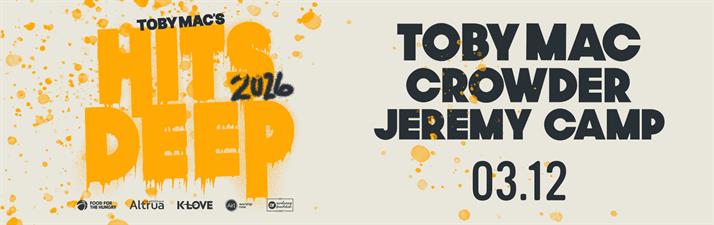 The lights lower. The crowd roars. The beat drops… and you know you’re at TOBYMAC’s Hits Deep Tour 2026! This year’s lineup brings the fire and as always, overloads your playlist with your favorite hits. Catch TOBYMAC’s soul-stirring “I just need U.”, the bass-pumping “Everything”, and a newer anthem, “Heaven on My Mind.” Dive into Crowder’s raw power with “Come As You Are,” “Good God Almighty,” and a latest smash, “Still”. Ride Jeremy Camp’s heartfelt anthems “I Still Believe,” “Walk By Faith,” and his current chart-climber “No Survivors.” It’s hit after hit after hit! Don’t miss the concert that fans count down to every year. Grab your tickets and get ready to sing, dance, and celebrate big at TOBYMAC’s Hits Deep Tour 2026!
